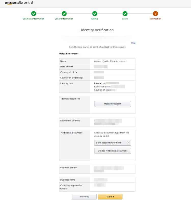 Congratulations! You’ve reached the final stage of the process, where you’ll need to upload a copy of your identity document as well as documentation for your bank account. Once these elements have been submitted, all you can do is wait for Amazon to get back to you by email to confirm the creation of your Seller account.